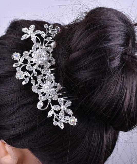 3D メタリック フラワー パール ヘア コーム