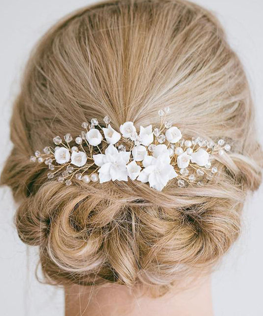 パール ビーズ ウエディング フラワー ヘアコーム