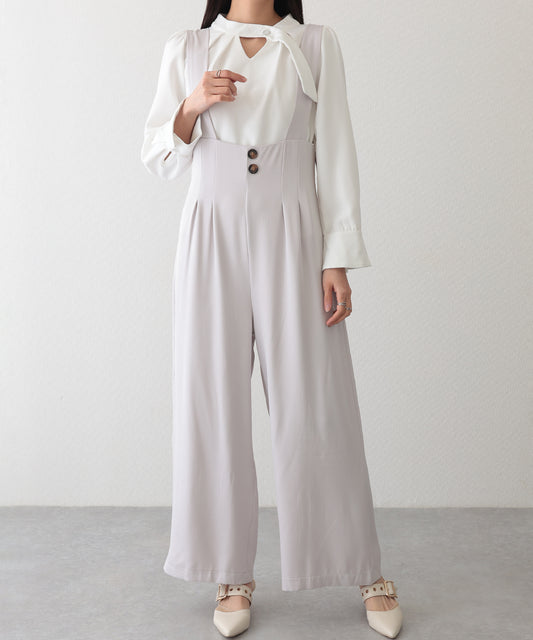 ダブルタック ボタン ハイウエスト サロペット パンツ