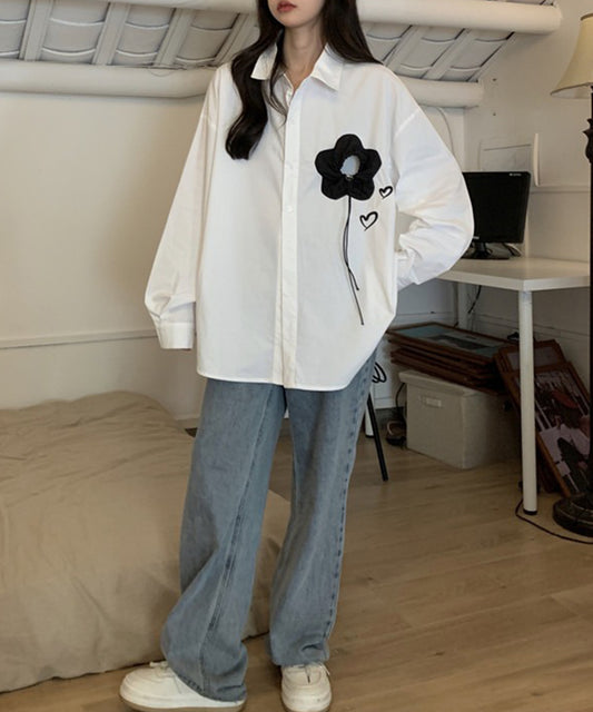 フラワー モチーフ レギュラーカラー オーバーサイズ シャツ