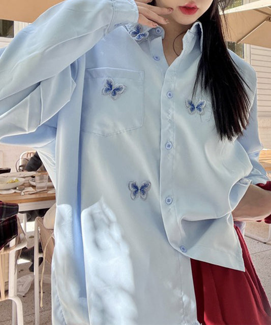 バタフライ 刺繍 レギュラーカラー オーバーサイズ シャツ