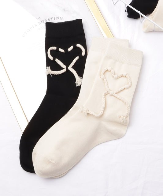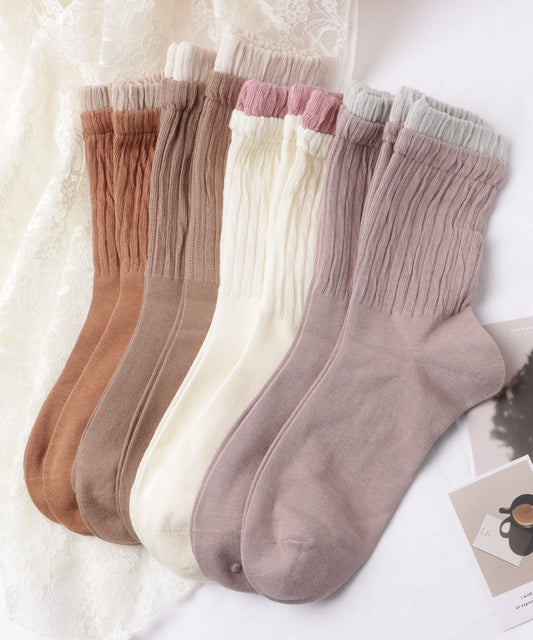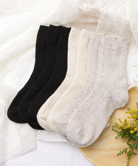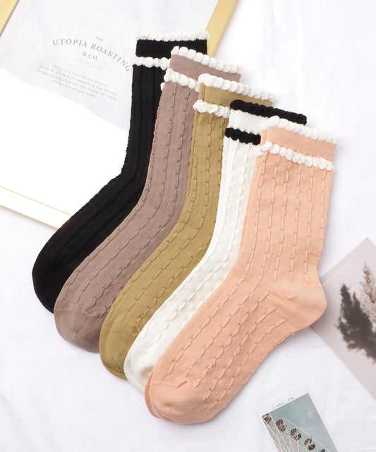 【5足セット】配色ぽこぽこラインステッチクルーソックス