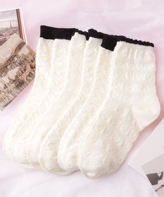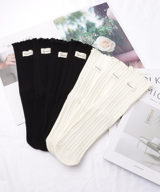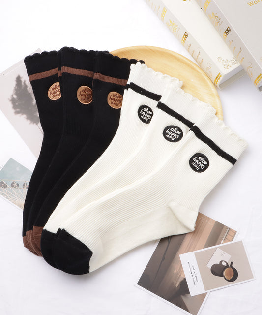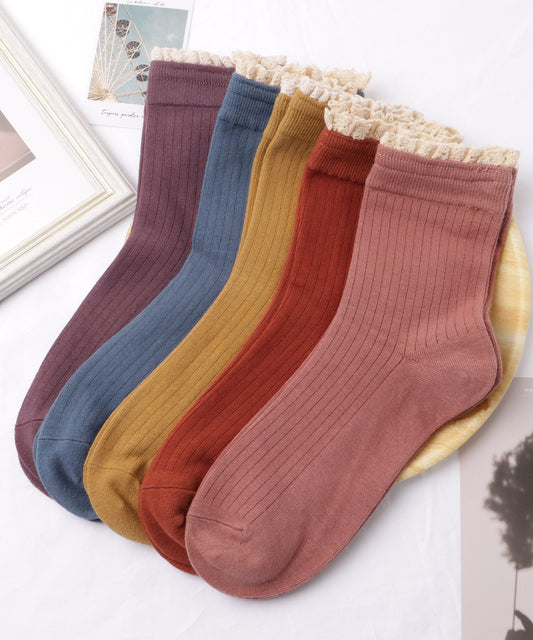 【5足セット】配色スカラップ刺繍付きリブソックス