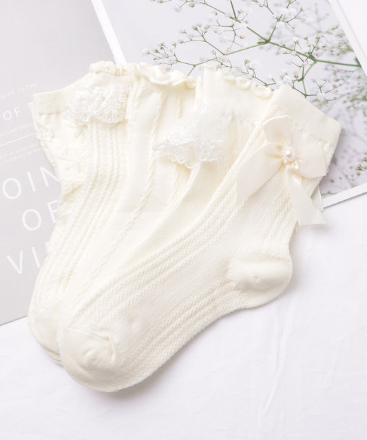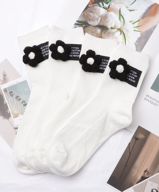 【4足セット】3Dフラワー付きクルー丈リブソックス