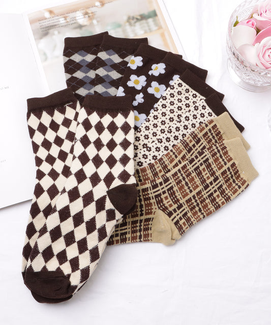 【8足セット】ダイヤ柄配色クルー丈ソックス
