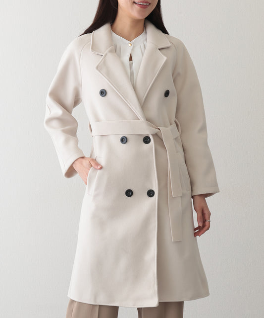 ウールライク テーラード ベルト付き ロング コート