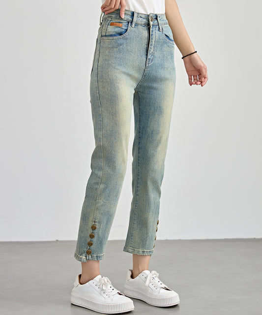 ハイウエスト サイドボタン 9分丈 デニム パンツ