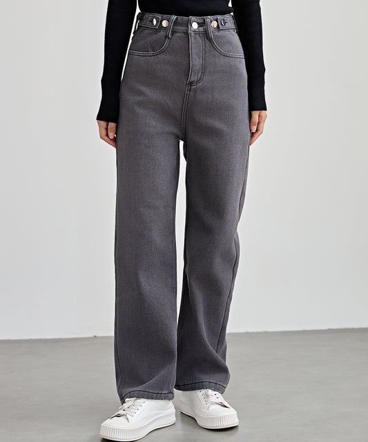 裏起毛 ハイウエスト ストレート デニム パンツ
