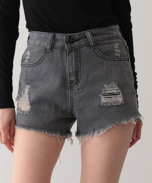 ユーズド風 ハイウエスト デニム ショート パンツ