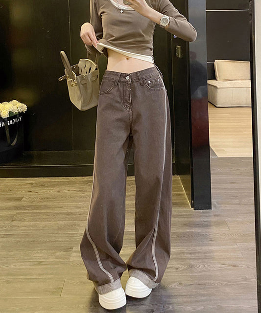 配色 ステッチライン ハイウエスト ワイド デニムパンツ