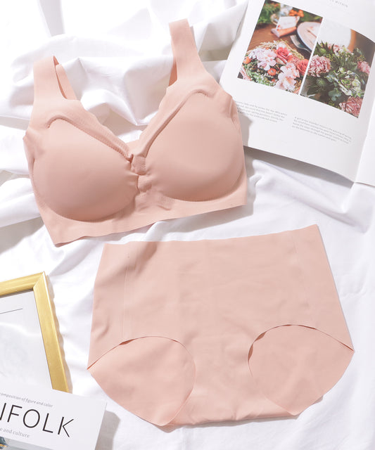 ソリッド カラー シームレス ノンワイヤー 3D ブラ&ショーツセット ナイトブラ