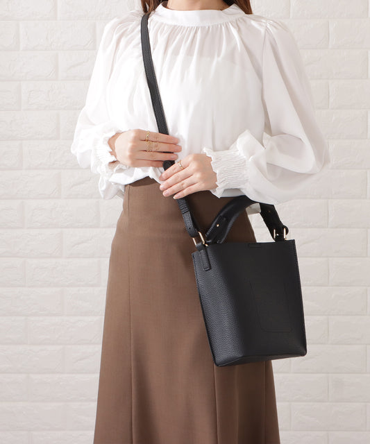 レザー調 コンパクト ラウンド 2WAY ショルダーバッグ