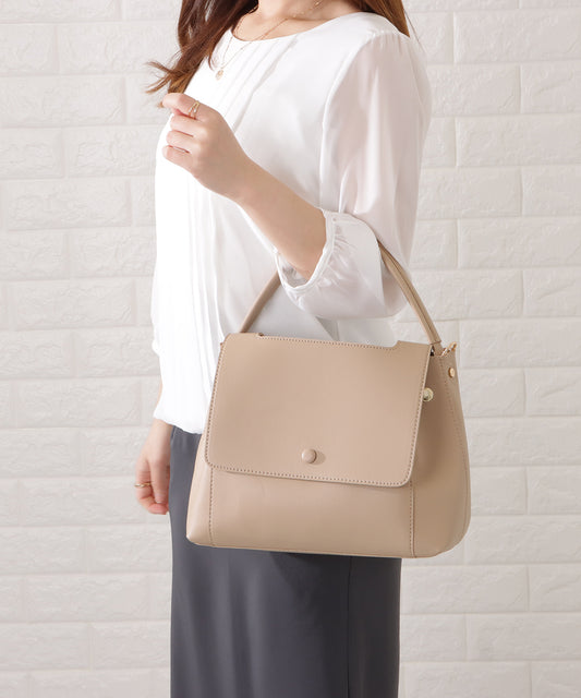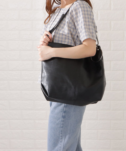 売り切れリング付きレザー調ビッグショルダーバッグ