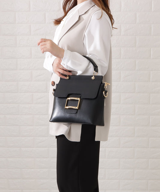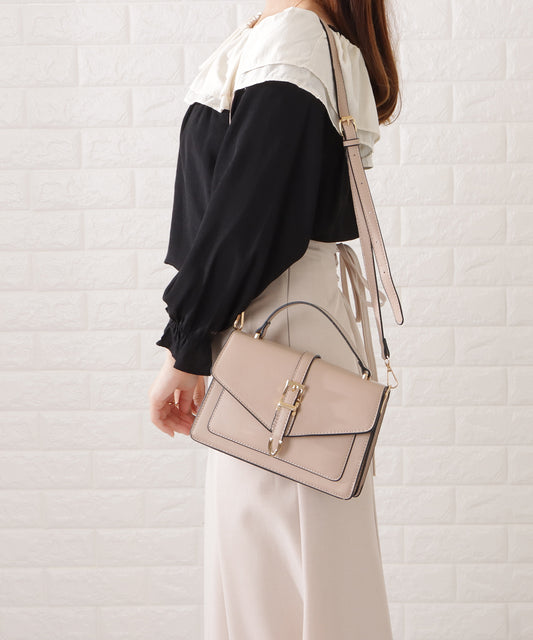売り切れレザー調2WAYスクエアベルト付きバッグ