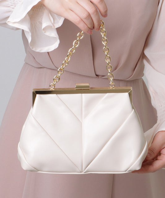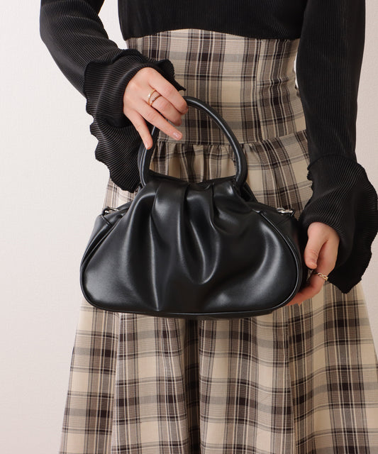 レザー調 2WAY コンパクト ギャザー がま口 バッグ