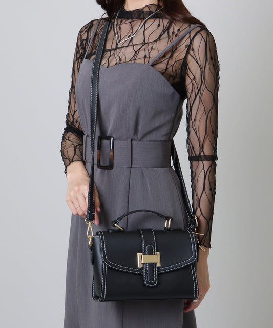 レザー調 コンパクト ステッチ ショルダー バッグ