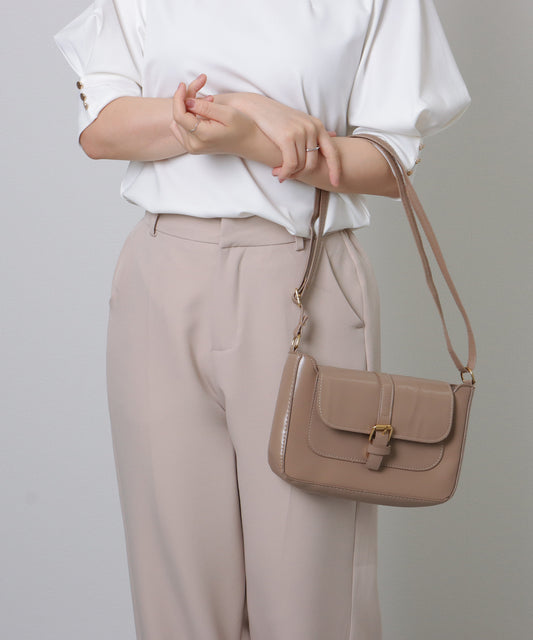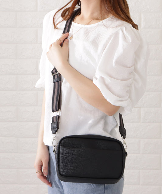 ストライプベルト付きレザー調2WAYショルダーバッグ