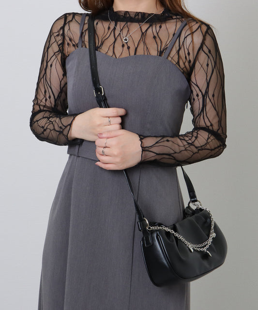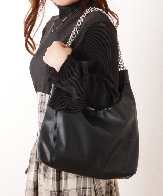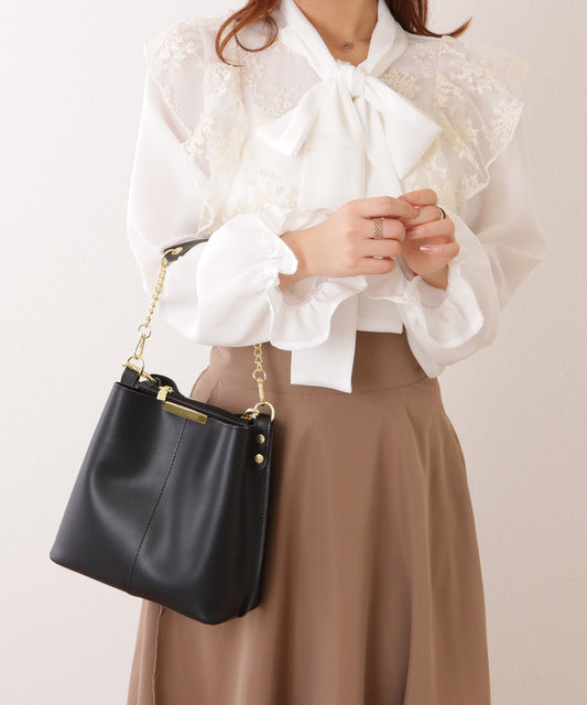 チェーンストラップ リボン ギャザー ショルダーバッグ