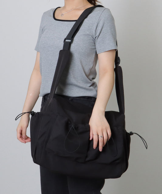 ソリッドカラー ドローコード付き 多ポケット ショルダーバッグ