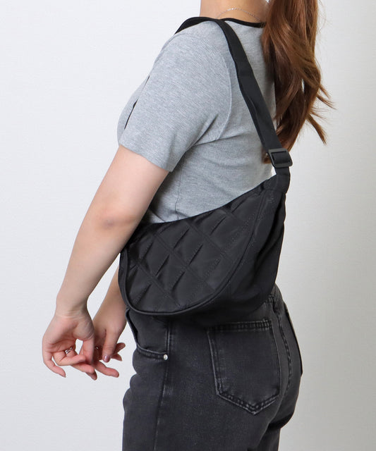 ソリッドカラー ハーフムーン ダイヤ ステッチ ショルダーバッグ