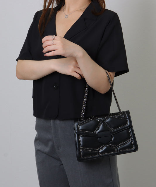 ダイヤ柄 メタリック ラウンド チェーン バッグ
