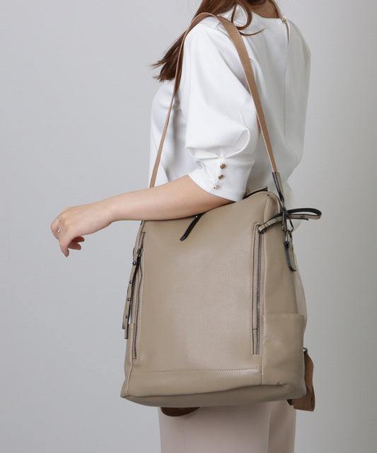 ソリッドカラー 多ポケット 2WAY ビッグ ショルダーバッグ