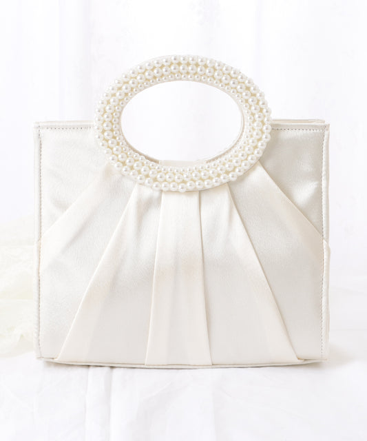 パール ハンドル タック スクエア ハンド バッグ