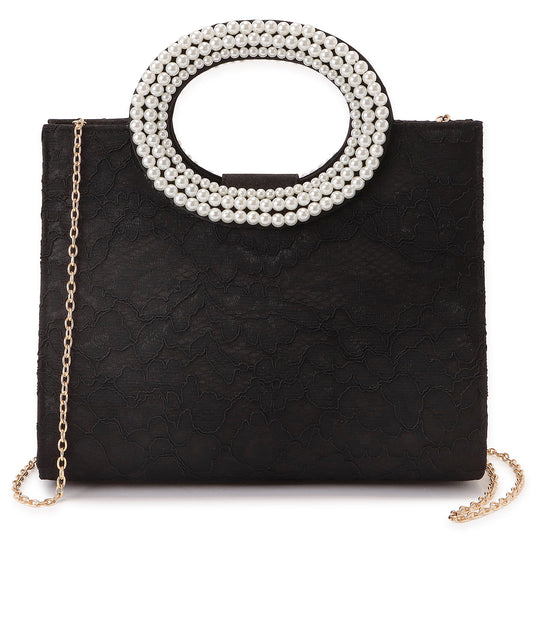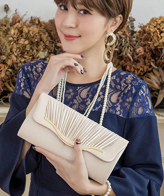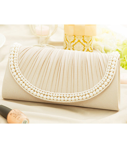 プリーツデザインパール&ストーン2WAYクラッチバッグ