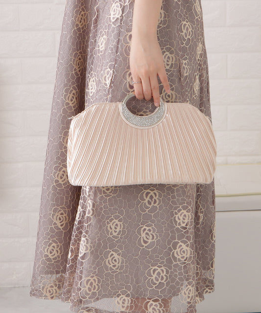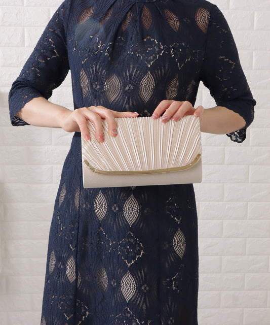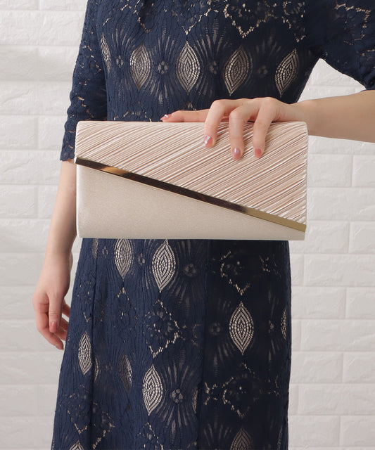 メタリック ライン付き V字 プリーツ クラッチ バッグ