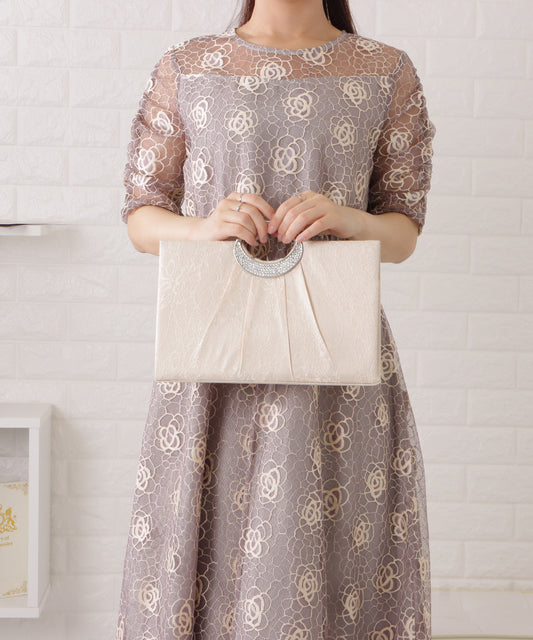 メタル ハンドル ビジュー付き スクエア ハンド バッグ
