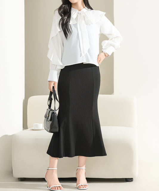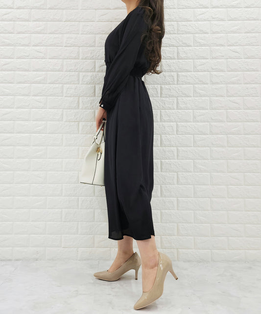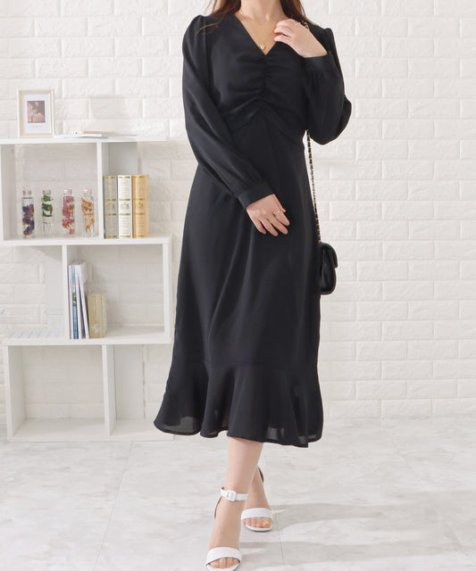 Vネックギャザーマーメイドワンピース