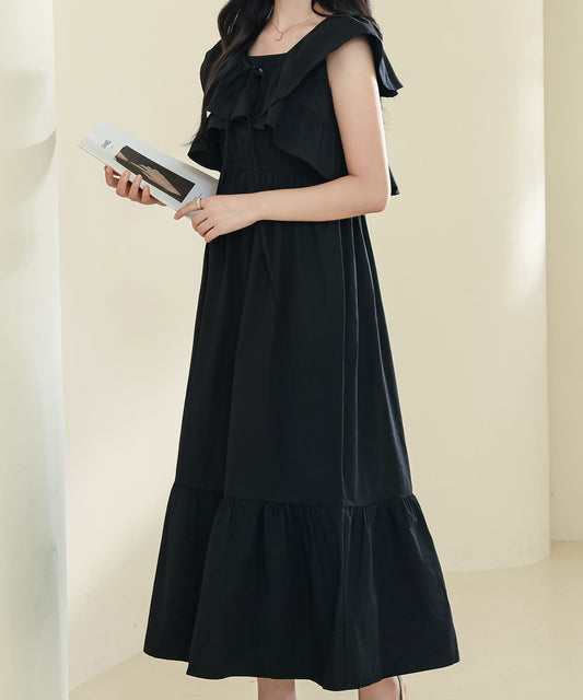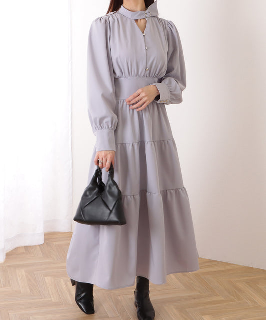 【2点セット】ボレロ付き フリルカラー ハイウエスト ティアード ロング コットン ワンピース