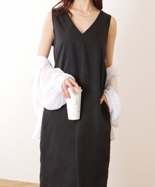Vネック Iライン ノースリーブロング ワンピース
