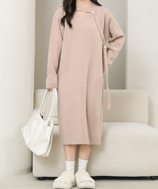 Vネック オーバー ニット ワンピース