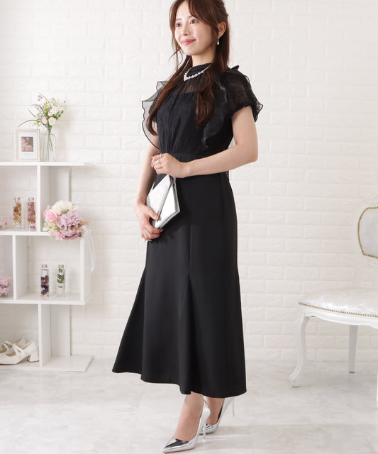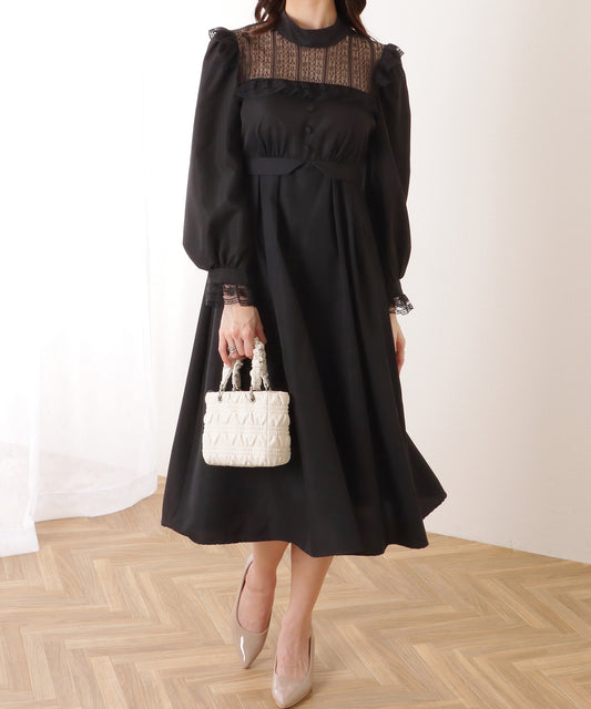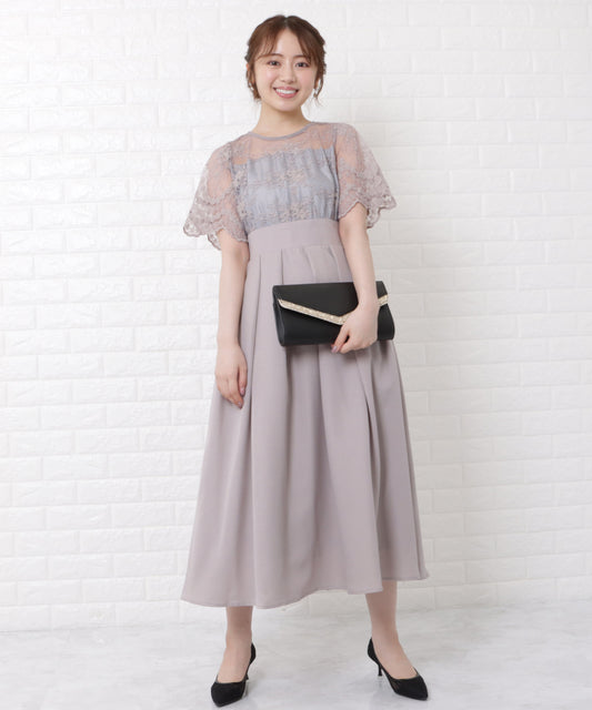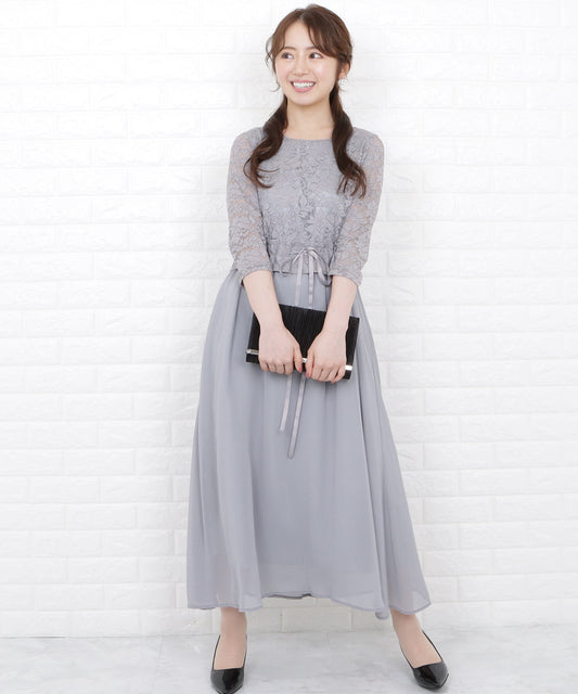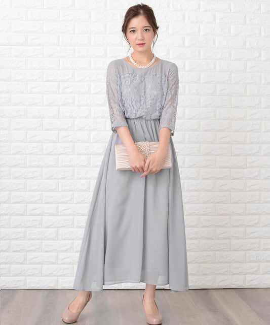 レースとシフォン素材ロング丈 ワンピース・ドレス