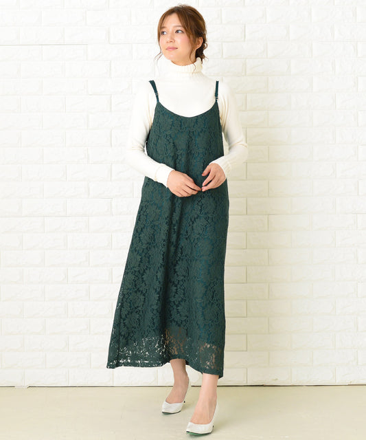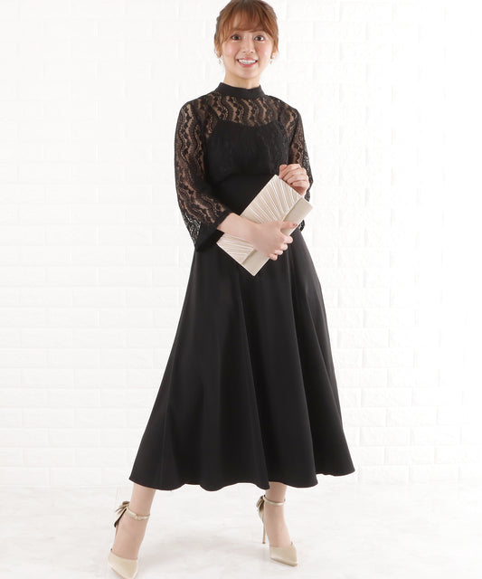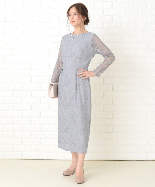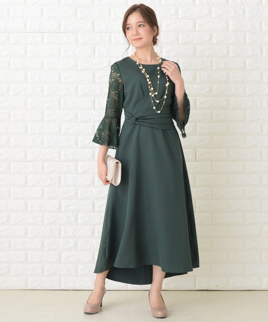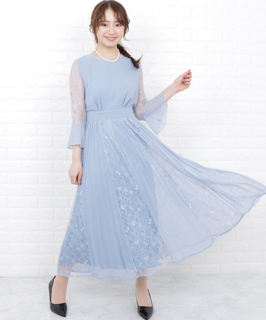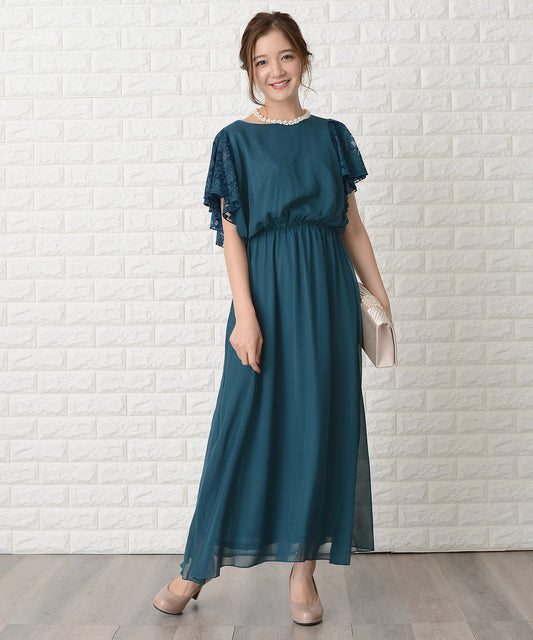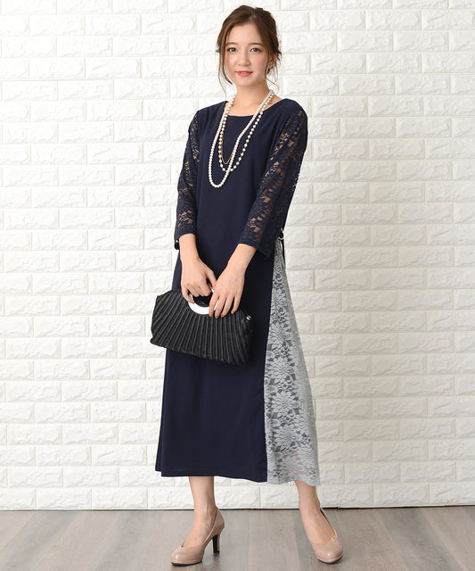 レース袖×サイドレースロング丈ワンピース・ドレス