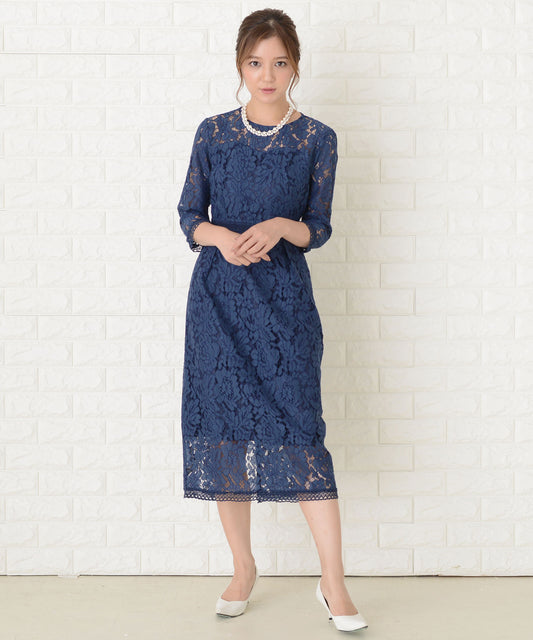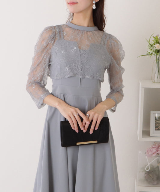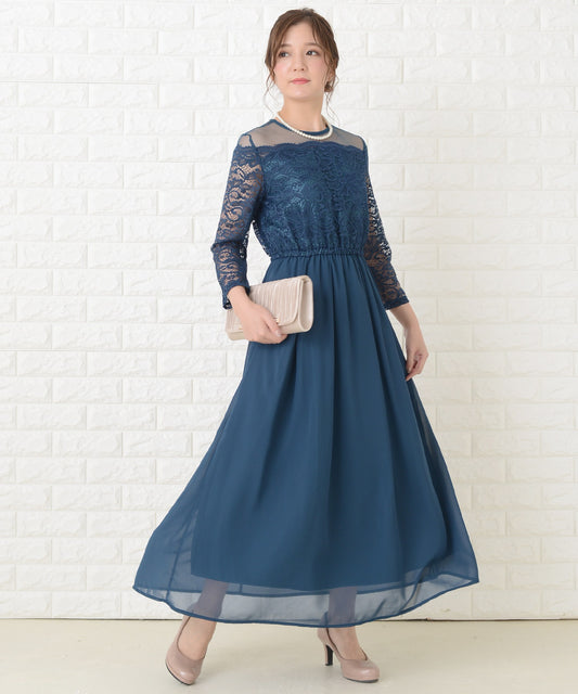 レース切り替え七分袖フォーマルワンピース・ドレス