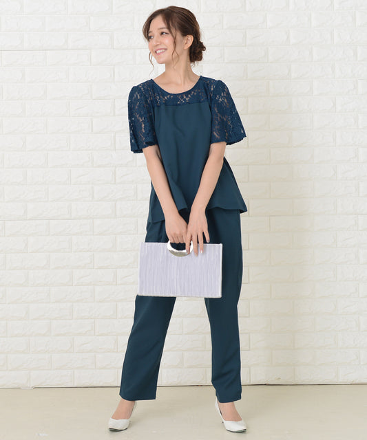 レース切替プリーツケープ付きパンツドレス・セットアップ