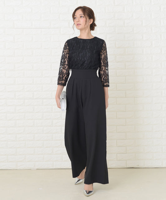 レース七分袖ワイドレッグパンツドレス・オールインワン