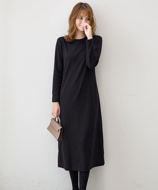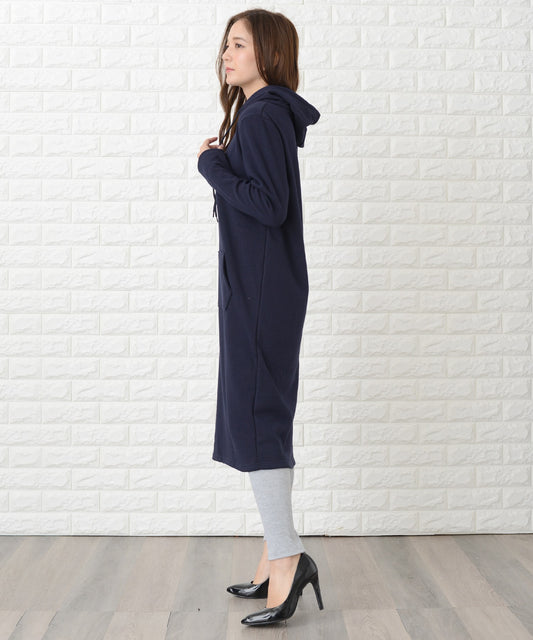 裏起毛フード付き無地あったかロングカジュアルワンピース