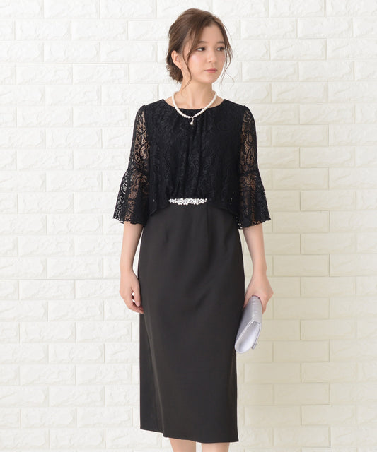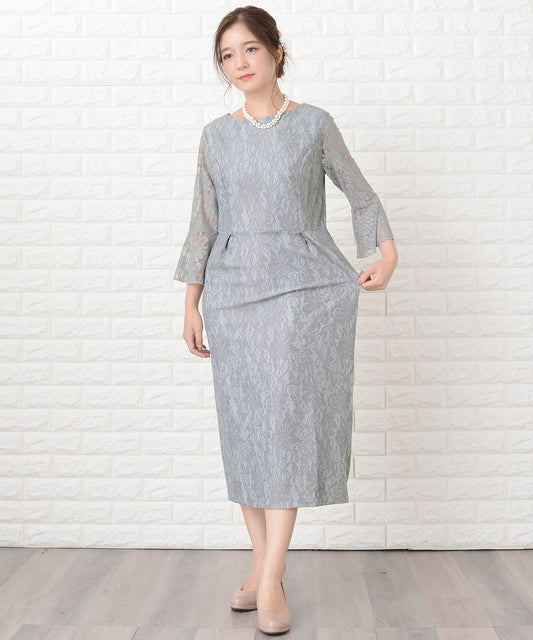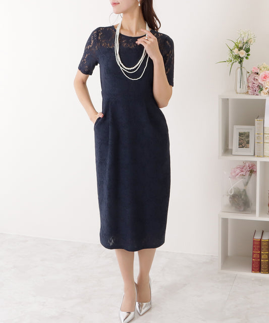 選べる着丈3タイプ 総レースシンプルタイトワンピース・ドレス
