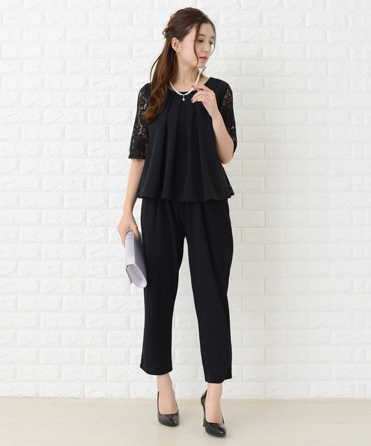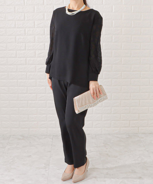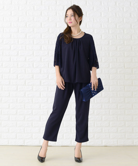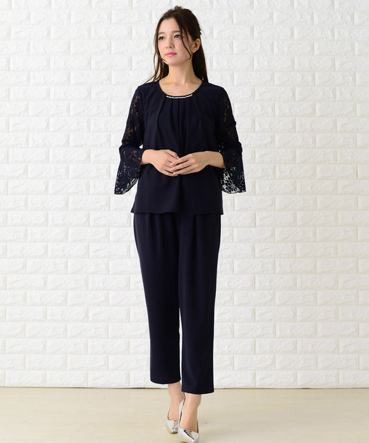 袖レーステーパードセレモニーセットアップ パンツドレス