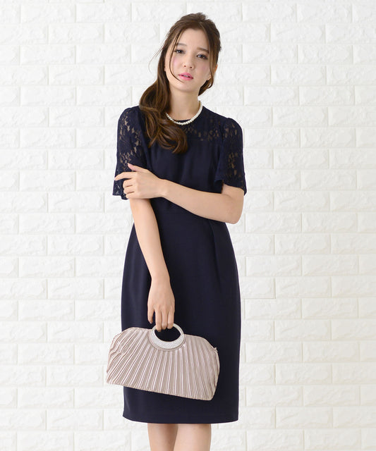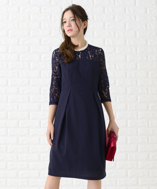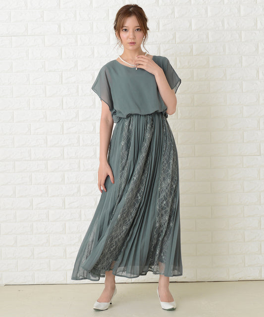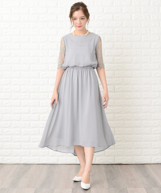 袖レース切り替えフィッシュテールワンピース・ドレス
