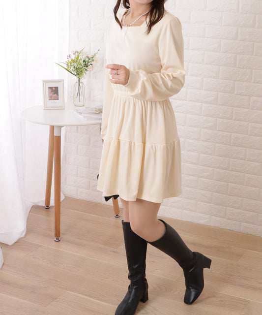 スクエアネックシャーリングフレアミニワンピース