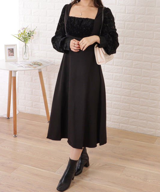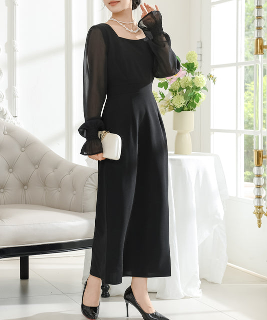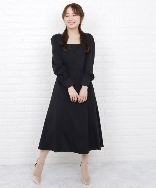 スクエアネックパフスリーブロングワンピース