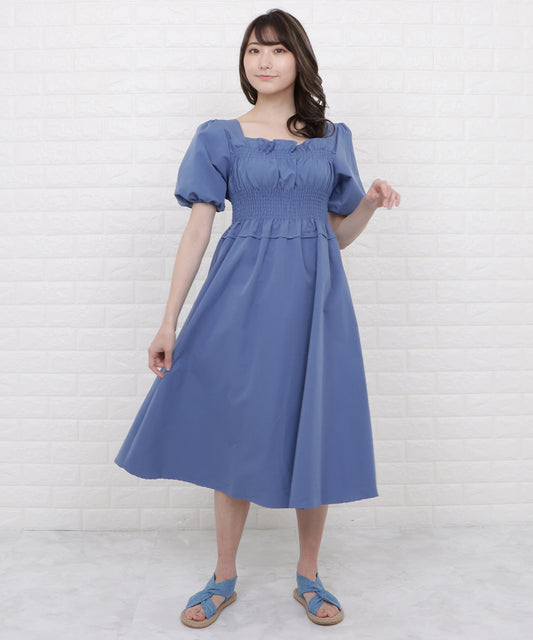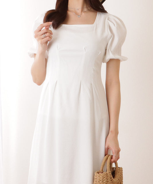 スクエアネックパフスリーブシャーリングワンピース