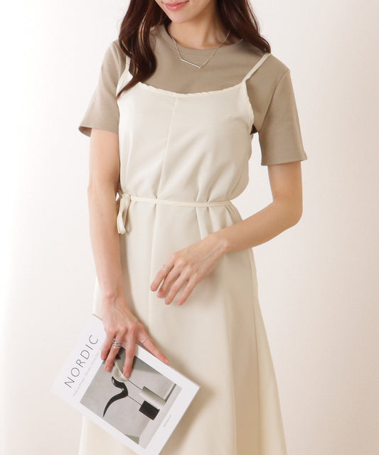 ソリッドカラー ウエストリボン キャミソール ワンピース