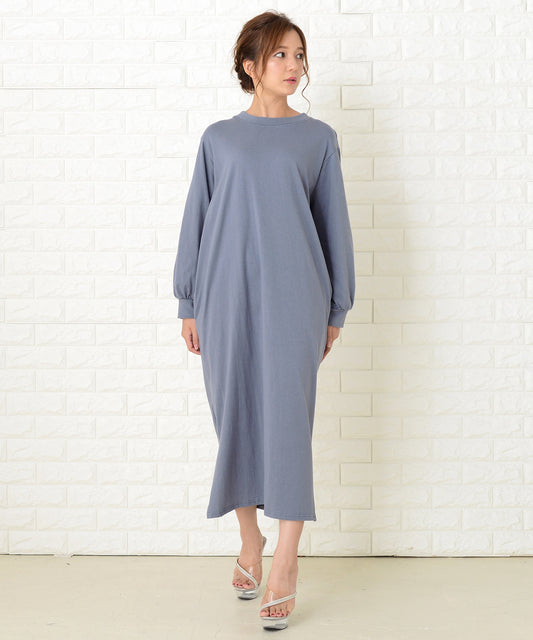 シンプル無地長袖ロングTシャツワンピース