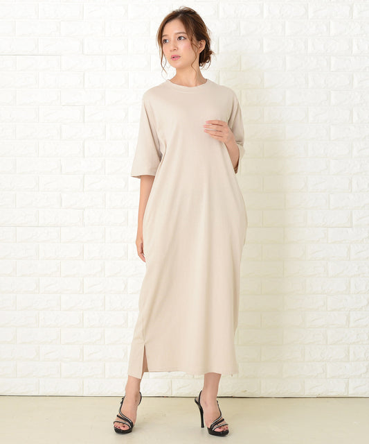 シンプル無地半袖ロングTシャツワンピース