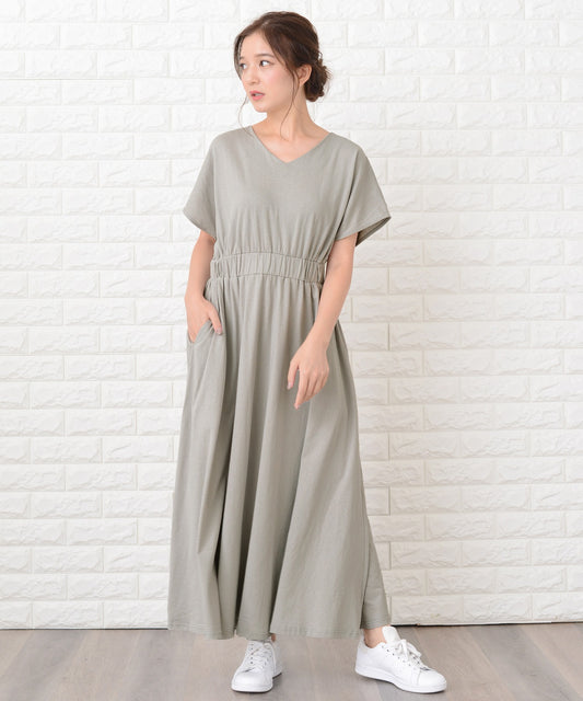 シンプル無地ウエストシャーリングマキシワンピース